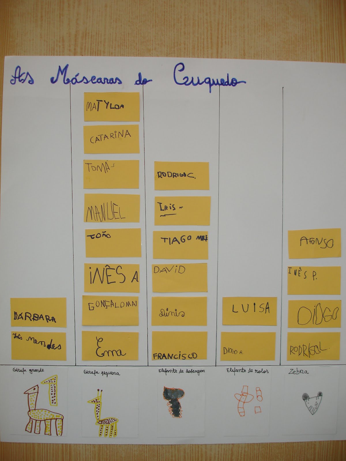 Este ano escolhemos as personagens da história - o Cuquedo, para criarmos as nossas máscaras. Ao escolher a máscara pretendida, criamos um gráfico de barras.